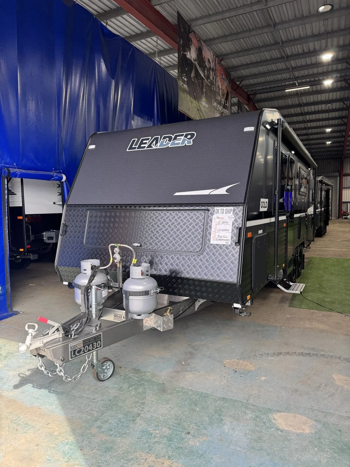 Hit the road in comfort and style with our brand new 2025 Leader Gold Triple Bunk Family Caravan – the perfect home away from home for families.